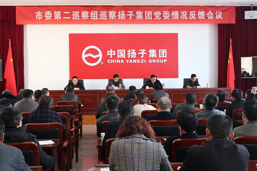 2019年3月7日下午,市委第二巡察組在揚子集團會議室召開了巡察中國揚子集團黨委情況反饋會。市委巡察領導小組成員、市紀委常委范繼賢到會作重要講話。市委第二巡察組組長張有才通報巡察情況。市經信局黨組成員副主任牛恒,揚子集團黨委領導班子成員、全體干部職工、各支部書記、揚子品牌企業主要負責人參加了會議。